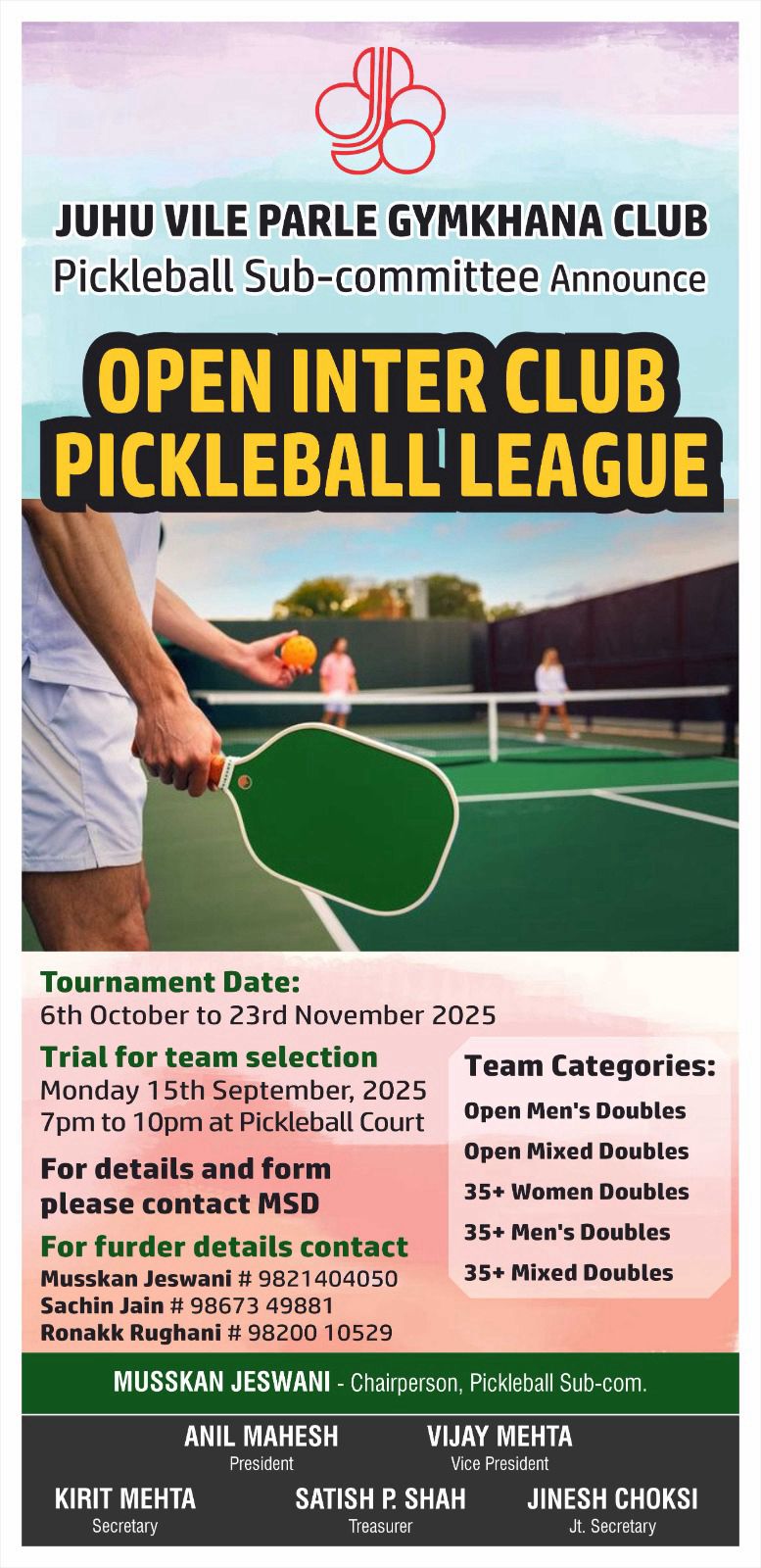 Open Inter Club Pickle Ball League from 6th October 2025 to 23rd November 2025