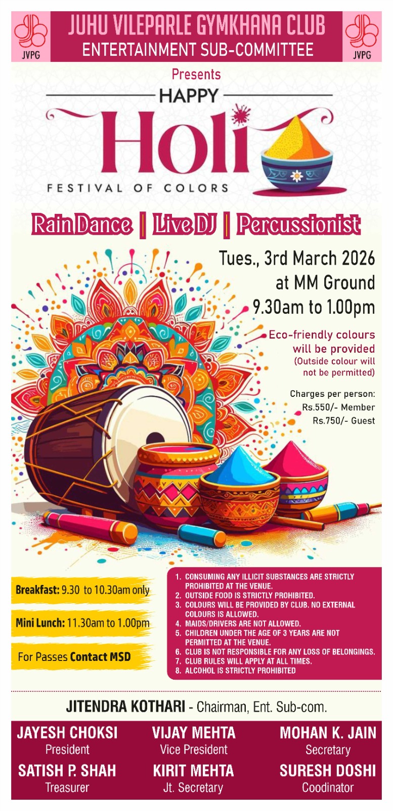 Celebration of Holi Festival of Colors on 3rd March 2026