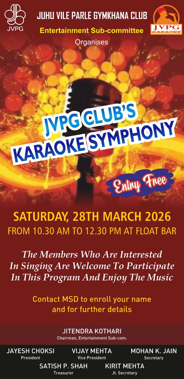 🎤 JVPG Club’s Karaoke Symphony 🎶 on 28th March 2026